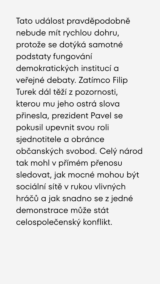 Filip Turek se vysmál demonstrantům. Prezidenta to nenechalo v klidu.