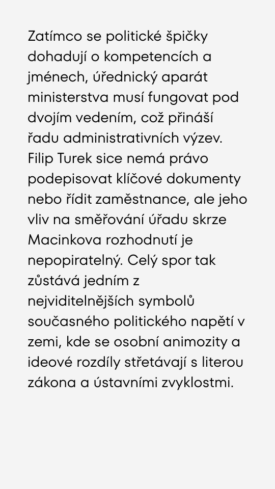 Macinka věří v brzký konec prezidenta Pavla a prý plánuje vést dvě ministerstva.