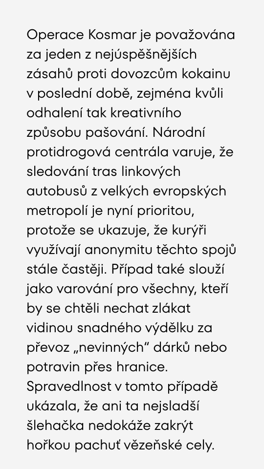 Čech prý ukrýval kokain v dortech vozil jej do Prahy.