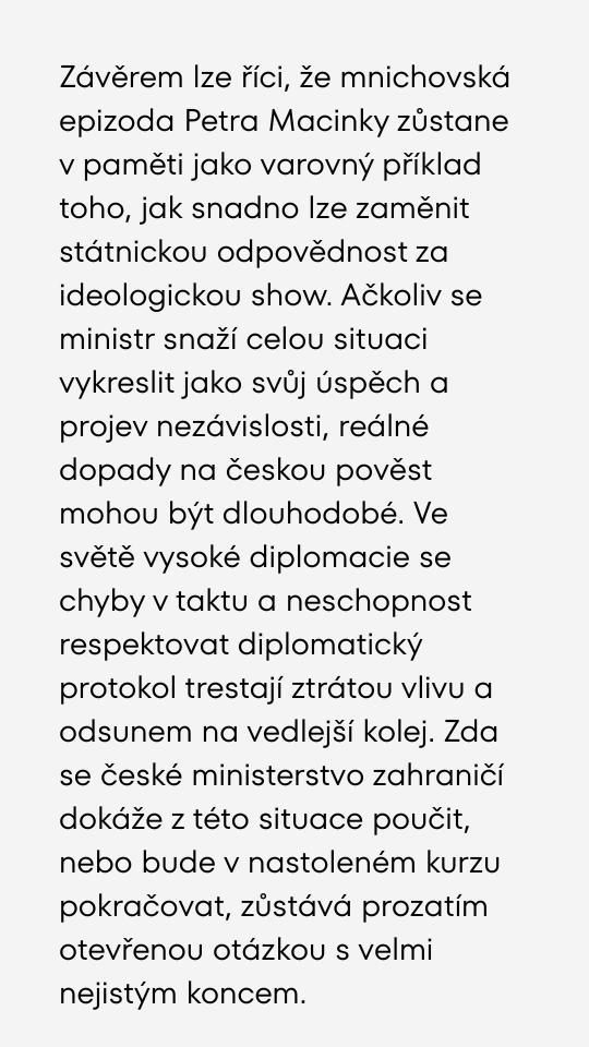Ostuda pro celé Česko! Tak se hodnotí návštěva Macinky v Mnichově.
