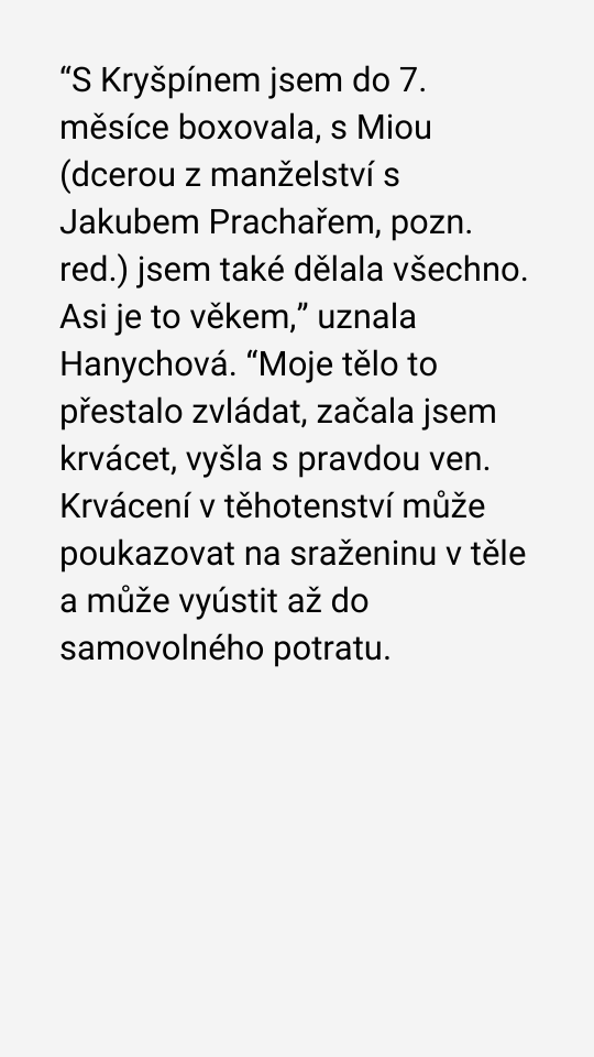 Agáta Hanychová začíná mít problémy v těhotenství. Tělo ji začíná vypovídat službu..