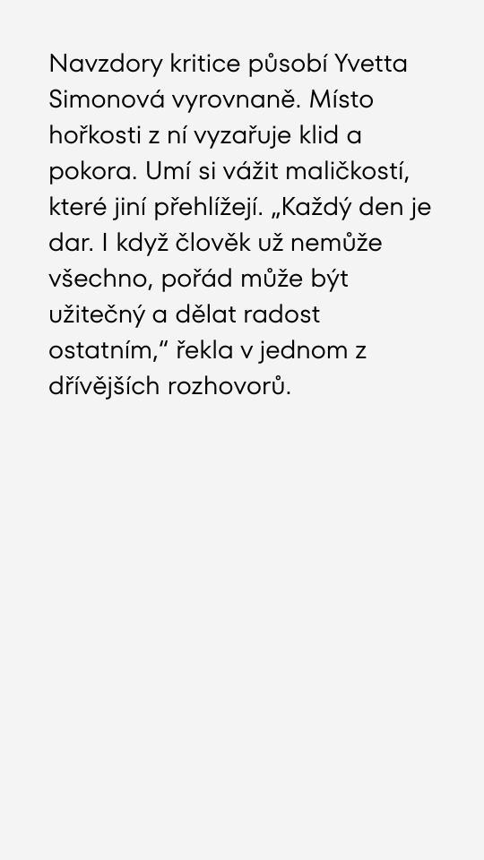 Yvetta Simonová promluvila otevřeně o životě v domově seniorů i o důchodech: „Politici si myslí, že staří už nic nepotřebují."