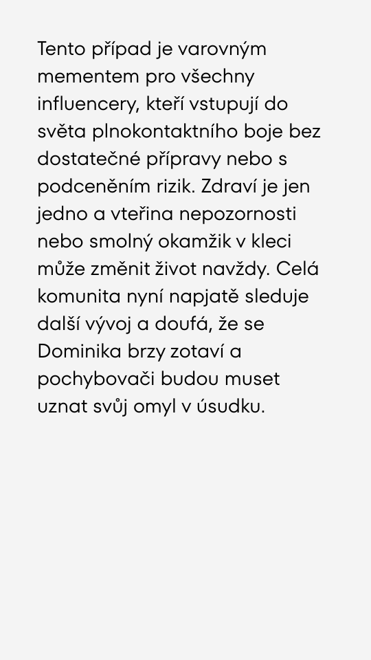Dramatická dohra zápasu v Clashi! Dominika Horáková skončila v nemocnici na JIPce. Trenér mluví o hrozbě ochrnutí.