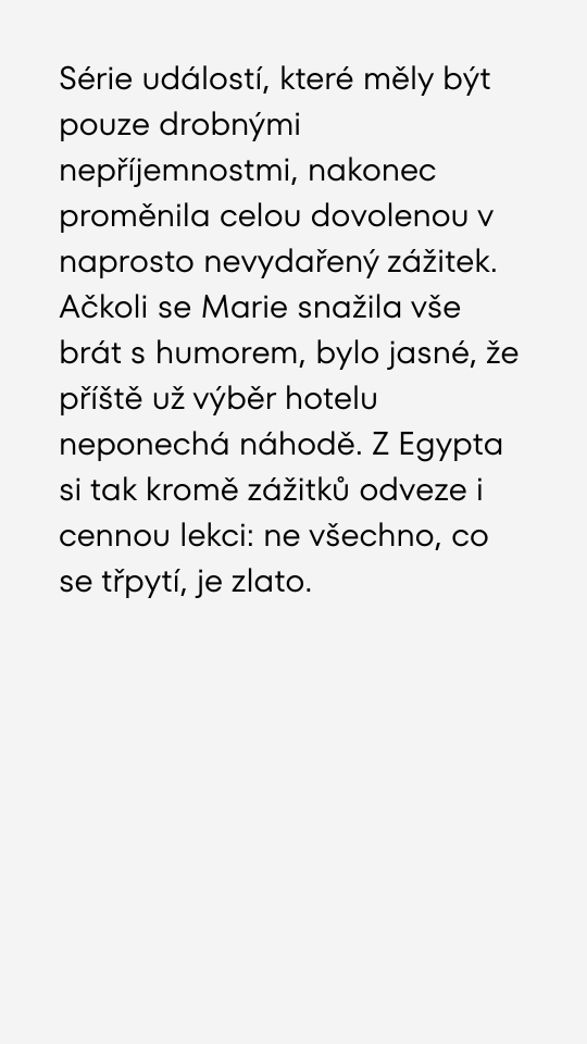 Marie Růžičková prožívá šílenou dovolenou v Egyptě. Smrad a komáři.