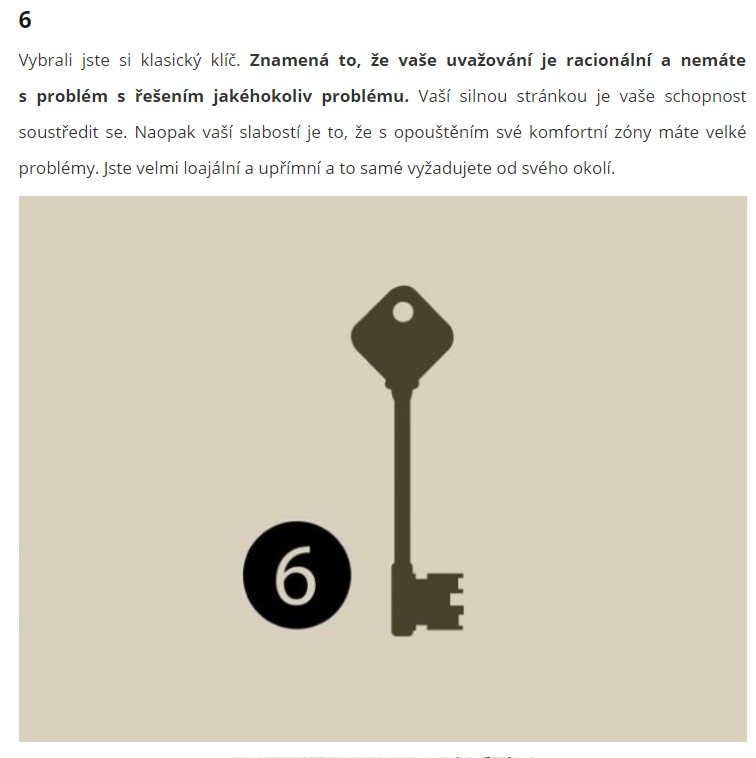 Který klíč Vás zaujal na první pohled? Zjistěte zásadní informace o Vašem charakteru.