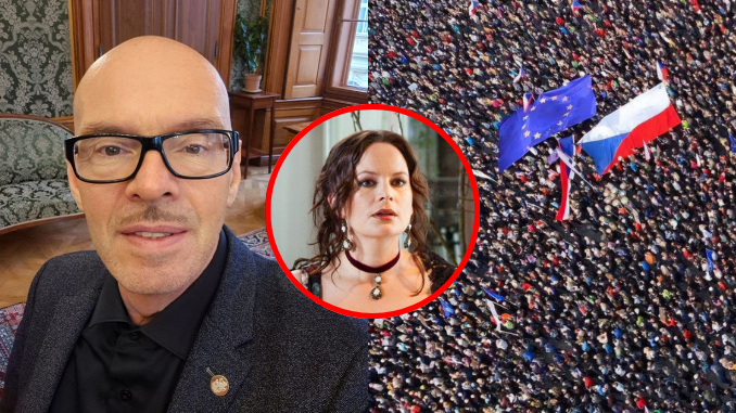 Napětí mezi uměleckou sférou a politickým vedením resortu kultury se vyostřilo během projevu moderátora Michala Jagelky, který na zaplněném Staroměstském náměstí nešetřil kritikou. Jagelka otevřeně zaútočil na ministrovu předrevoluční historii a jeho údajnou spolupráci se státní bezpečností pod krycím jménem Olda. Podle umělců je nemyslitelné, aby resort vedl člověk s takovou minulostí, zejména v době, kdy se rozhoduje o klíčových změnách v mediální legislativě a financování veřejné služby přes koncesionářské poplatky.